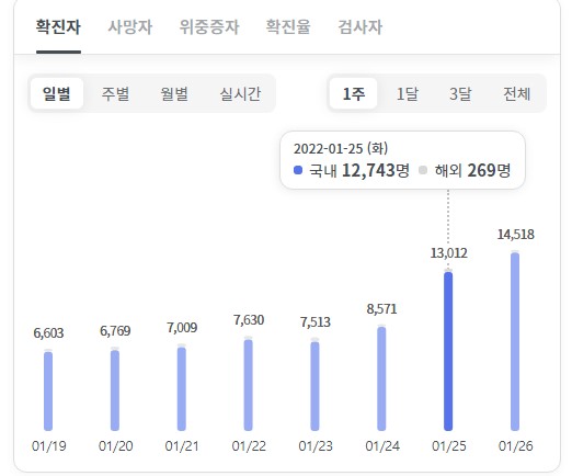 지난 1월 19일 부터 연일 확진자의 수는 증가하고 있는 추세인데요