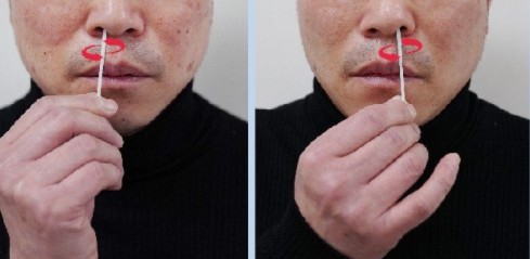 2. 면봉을 양쪽 콧구멍 안쪽 표면에 1,5~ 2cm 넣고 10회 가량 둥글게 문질러 줍니다