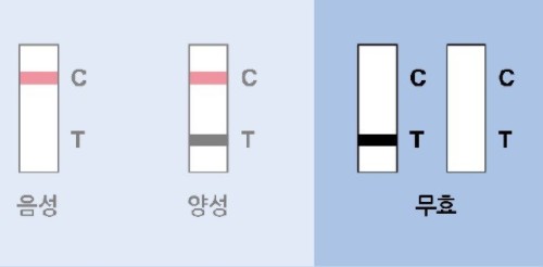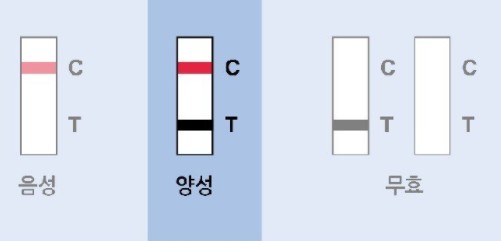 6. 검사 결과가 두 줄로 나타나면 양성으로 선별진료소 등을 방문하여 PCR검사를 받아야하고