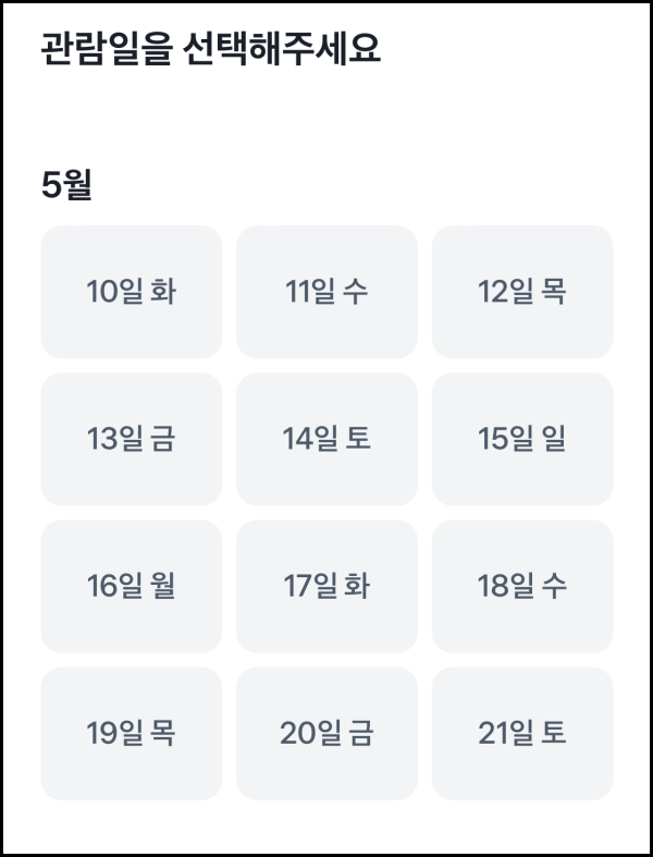 그이후 관람일에 따라 신청날짜도 변경 될 것 같습니다