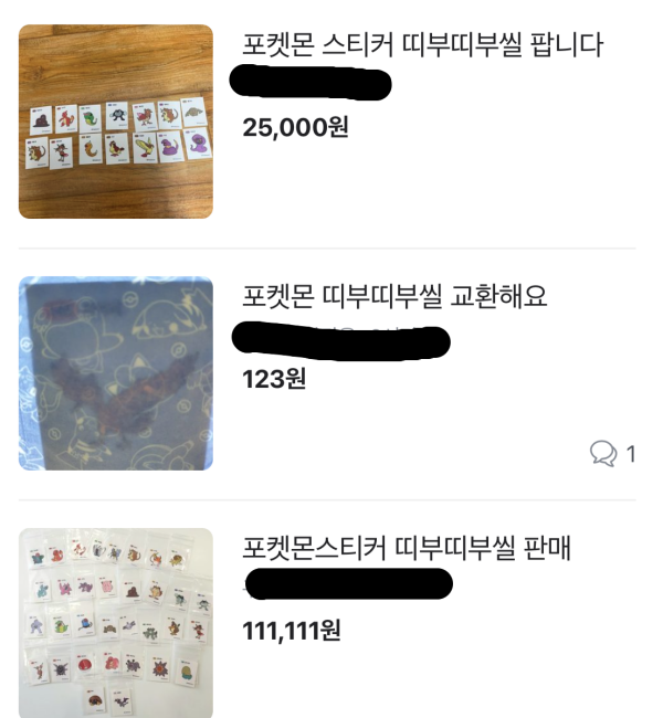 동네 당근마켓에서 거래되고 있는 띠부띠부씰을 검색해보았어요