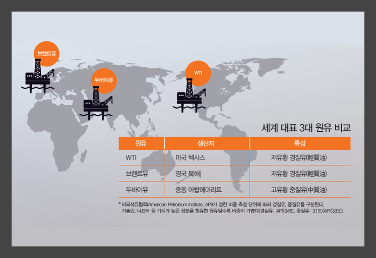 텍사스 중질유, 두바이유와 함께 국제적으로 거래되는 3대 유종으로 3대 유종은 국제 원유가격의 기준이 됩니다.