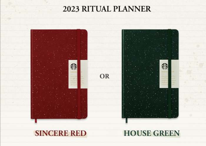 스타벅스 다이어리는 신시어 레드와 하우스 그린 두 가지 색상 중 선택이 가능하고요