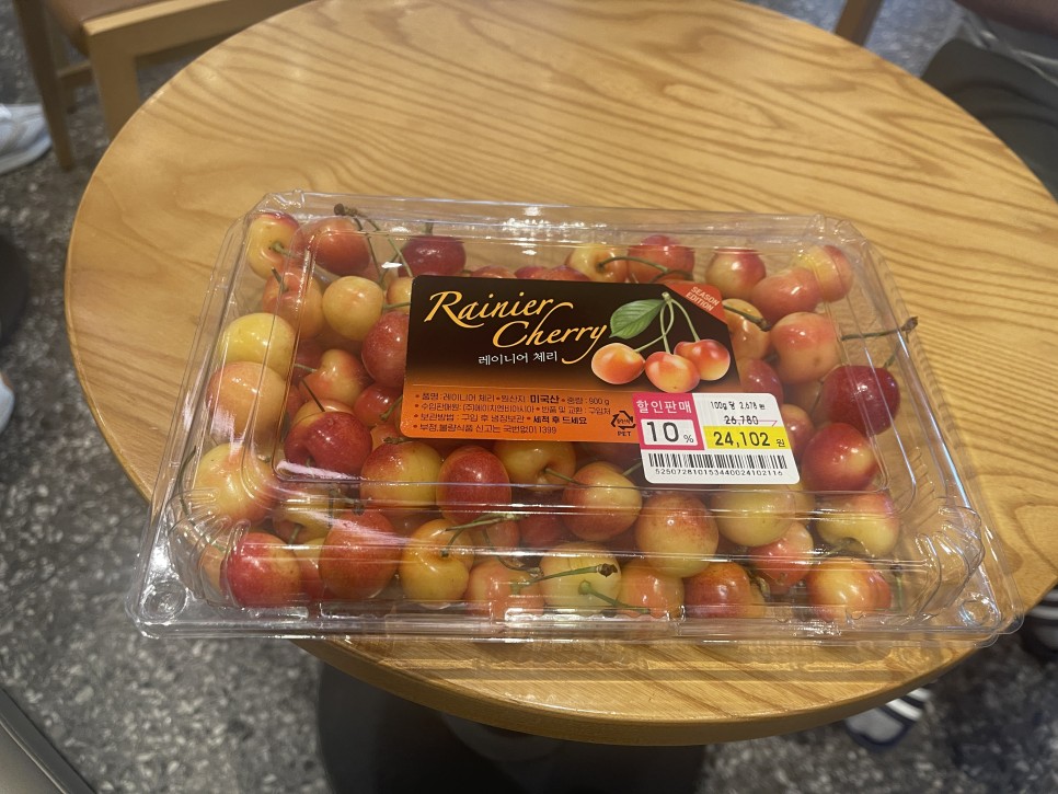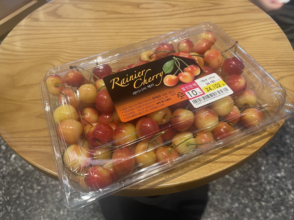 기존에 판매하고 남은 레이니어 체리였어요