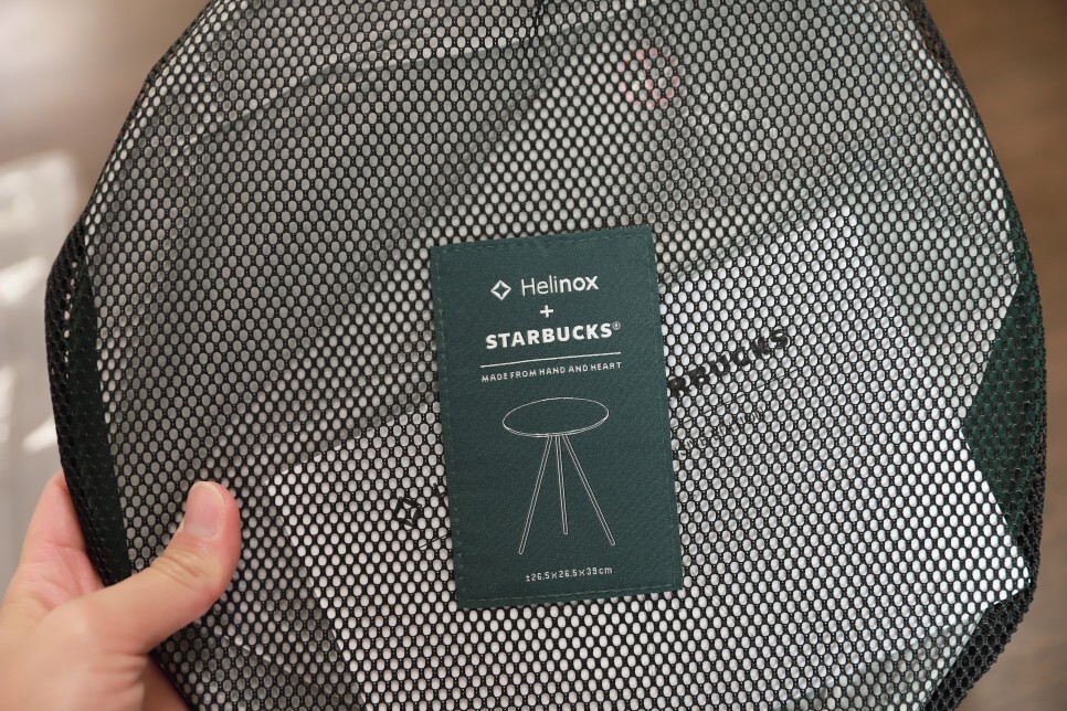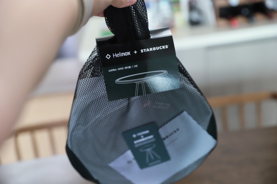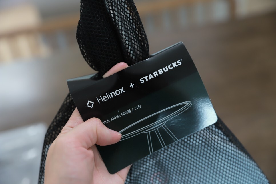 사이드 테이블 뒷면에도 헬리녹스와 스타벅스가 예쁘게 각인되어 있어요