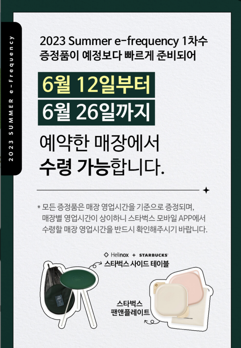 스타벅스 프리퀀시 증정품의 1차 수령 기간이 6월 17일에서 12일로 변경이 되었어요