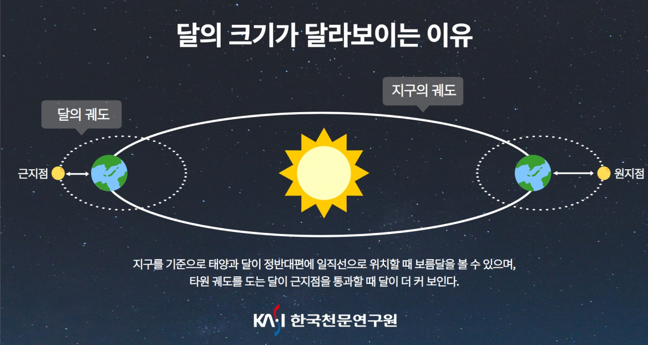 슈퍼문의 경우 달이 지구랑 가까워지는 지점에서 미니문보다 약 14%크고 30% 밝게 보이는데요 달과 지구의 물리적인 거리가 조금 더 가까워지긴 하지만 달이 크게 보이는 데에는 대기의 상태나 주관적인 부분도 작용하기에 육안으로 특별한 차이를 느끼지 못할 경우도 있다고하네요