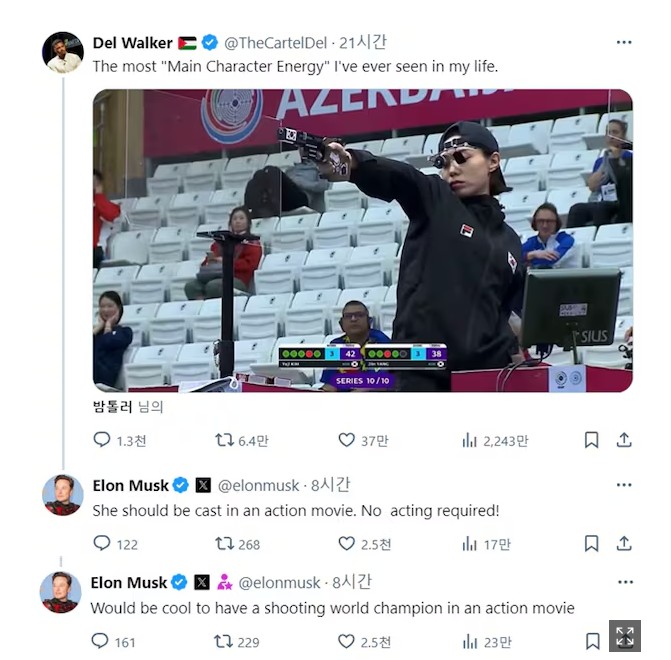 2024 파리 올림픽 당시 일론 머스크 테슬라ceo의 찬사를 받았던 사격 은메달리스트 김예지 선수가 국내 최초로 테슬라코리아의 앰버서더가 됐습니다