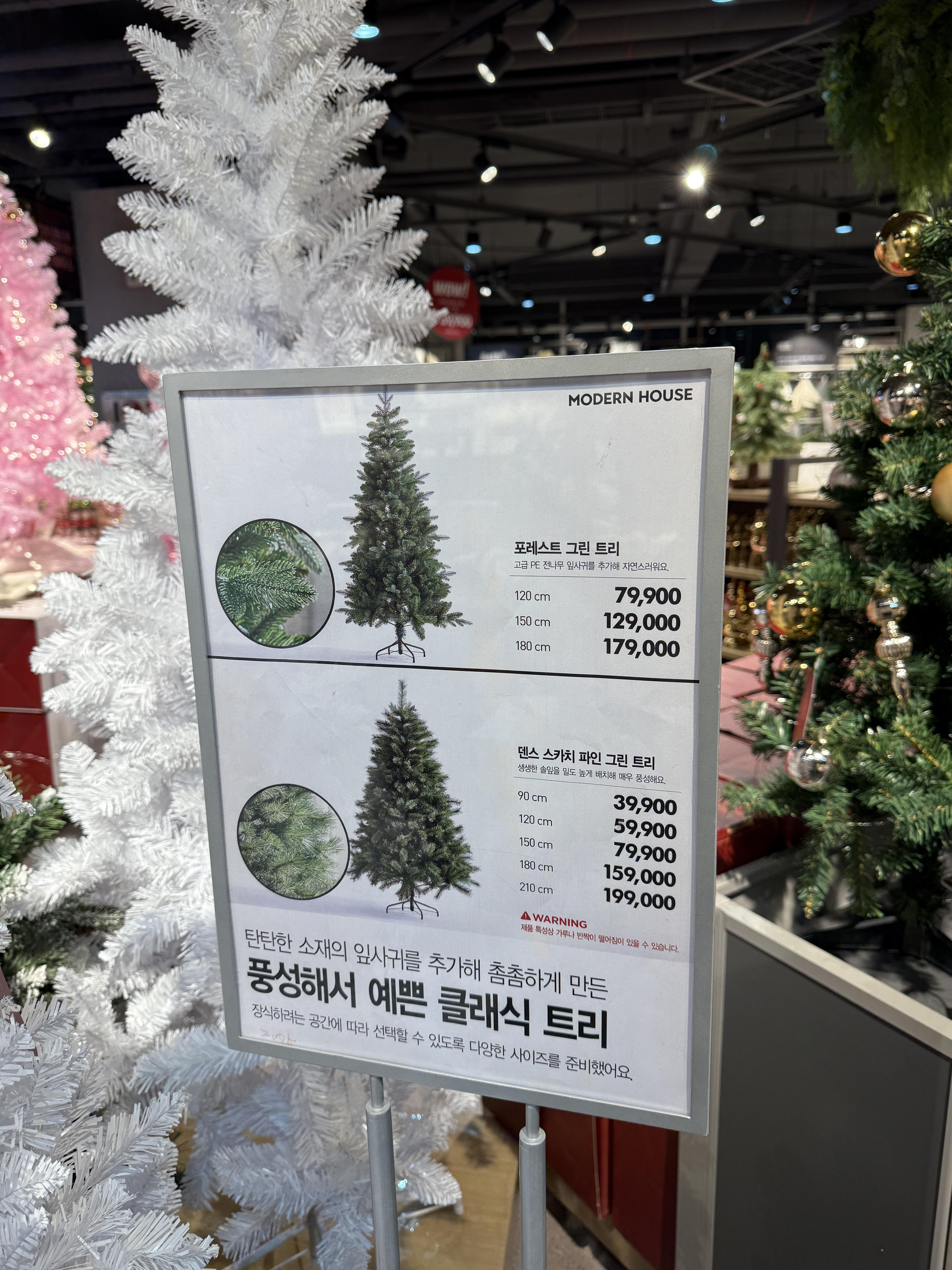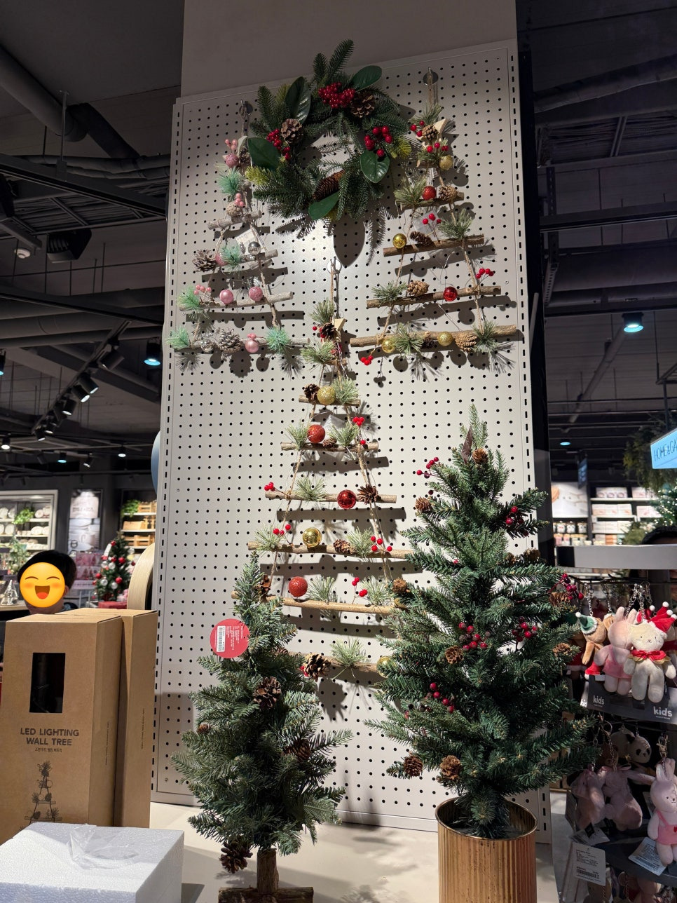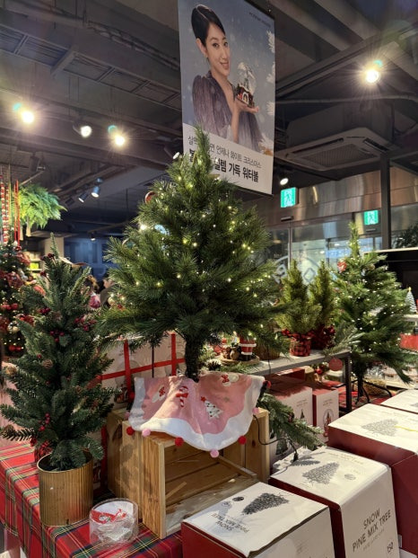 크리스마스트리는 사이즈별로 소재별로 다양한 제품이 판매되고 있었어요