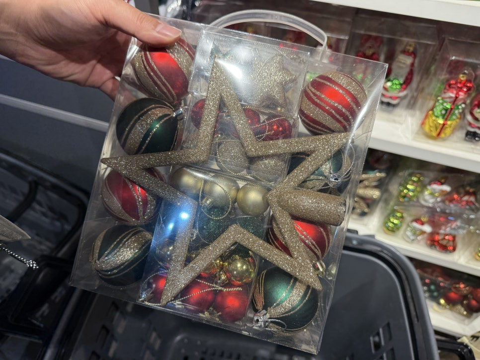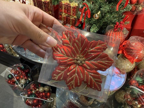기본적인 볼 장식 외에도 추가적으로 달아주면 예쁠 포인세티아와 지팡이 오너먼트가 3개들이 4,900원입니다