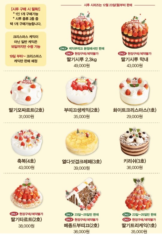 일부 케이크의 경우 예약이 불가하고 현장구매만 가능한점 참고해주세요