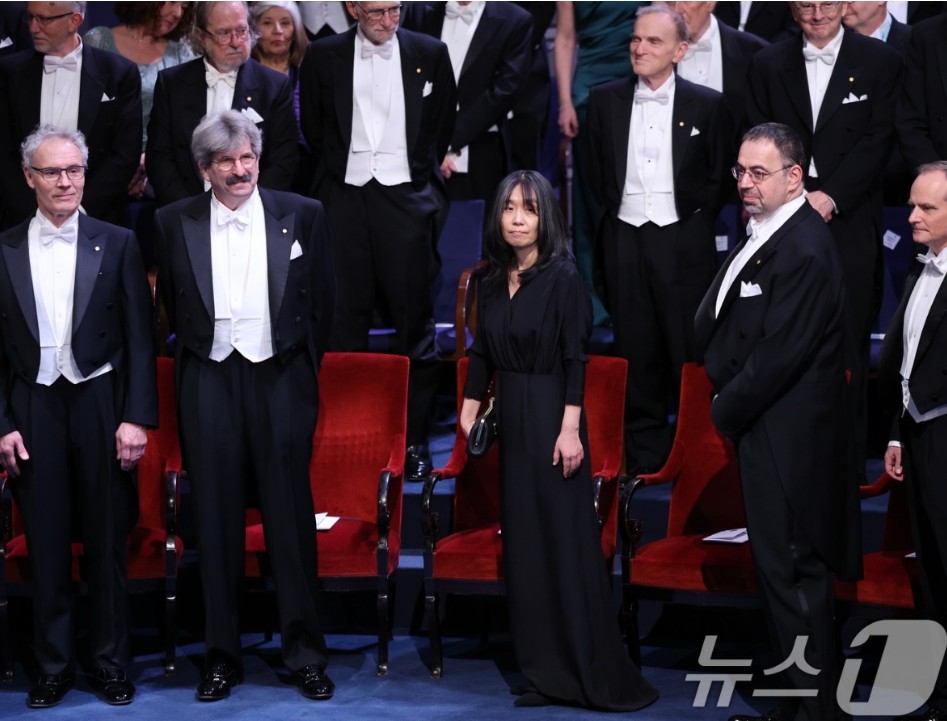 스웨덴 스톡홀름의 랜드마크인 콘서트홀에서 열린 '2024 노벨상 시상식'에 참석해 칼 구스타프 16세 스웨덴 국왕으로부터 노벨상 메달과 증서를 받았습니다