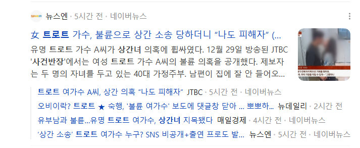 방송 후 유명 트로트 가수 B씨가 2019년 트로트 경연대회에서 TOP10에 올라 이름을 알린 인물이라고 전해지고 가수 숙행이라고 특정되었는데요
